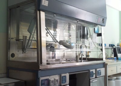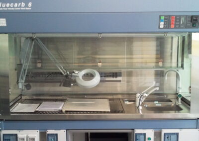- in Anatomia Patologica per il taglio pezzi, il montaggio vetrini e la preparazione di estemporanee. Per la sala settoria, anche in medicina legale come tavoli operatori per cavie